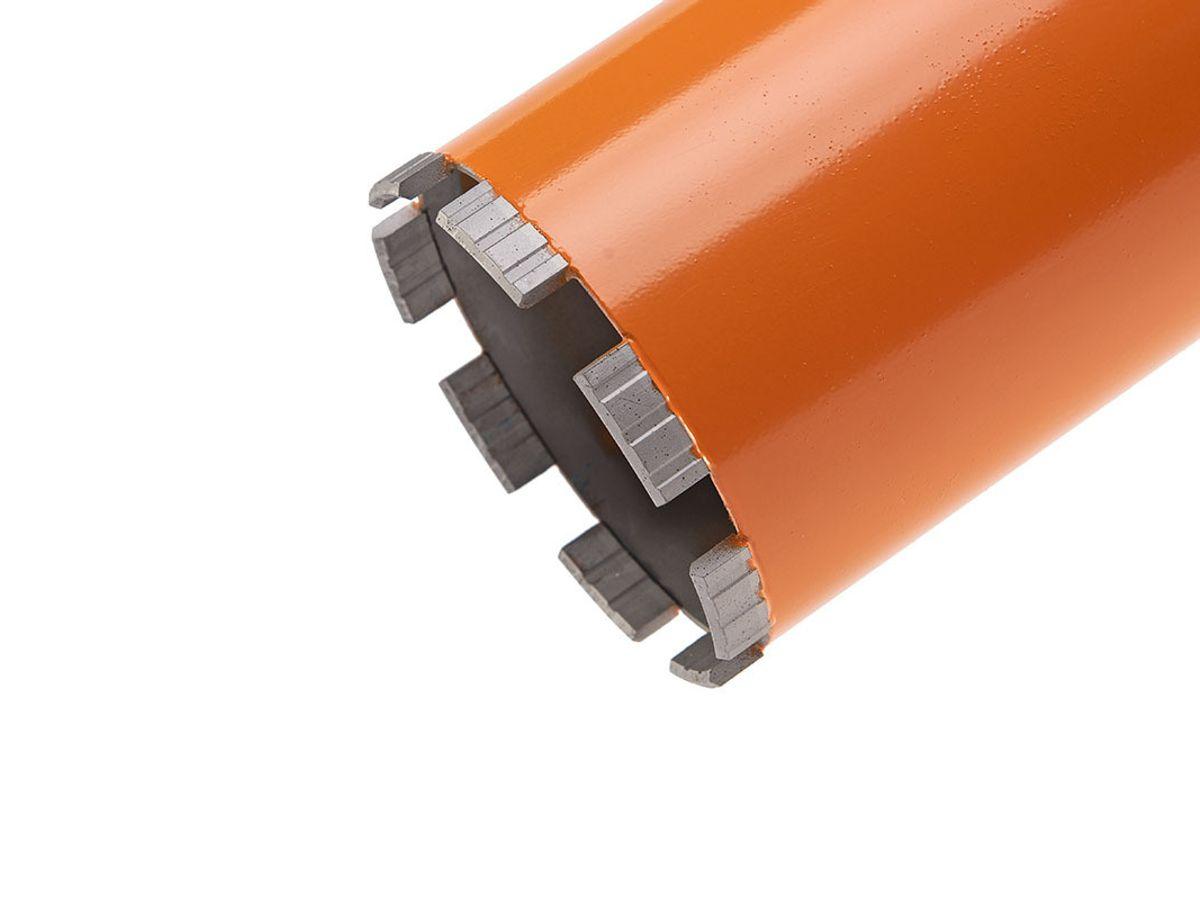 Dankzij het puntvormige daksegment centreert de boor zich eenvoudig en blijft hij stabiel tijdens het boren. De turbo-vorm aan de binnen- en buitenzijde van het segment zorgt voor een optimale afvoer van boorstof, wat resulteert in uitstekende prestaties – zowel nat als droog. De zigzag laserlassen verbinden de segmenten stevig met de boorbuis, wat zorgt voor maximale hechting en betrouwbaarheid.